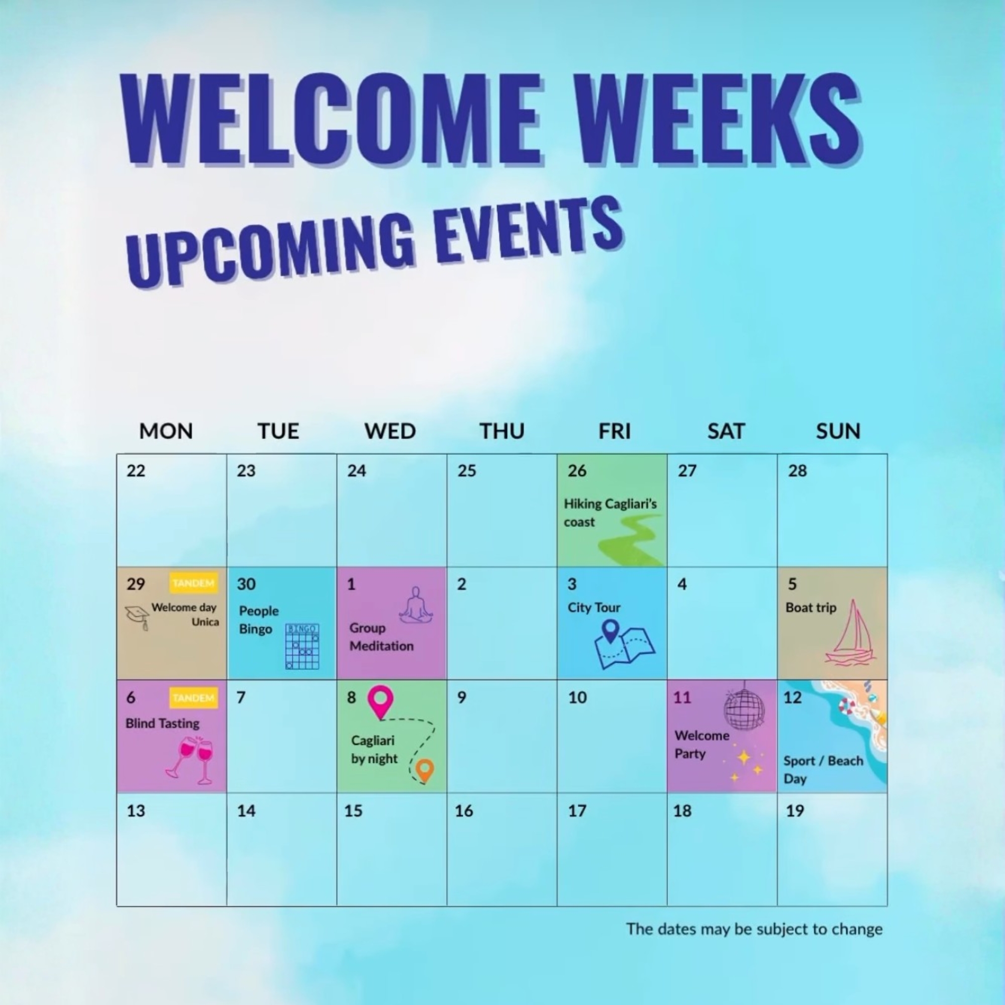 A full calendar of activities to kick off your Erasmus adventure in Cagliari!